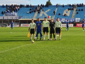 Διαιτητής στο γειτονικό ντέρμπι του Α.Ο.Κ. με το Νέστο ήταν ο Γιώργος Τασιόπουλος της Ε.Π.Σ. Θεσσαλίας με βοηθούς του, τους κ.κ. Αγγελόπουλο-Χολάνη της Ε.Π.Σ. Μακεδονίας. Μπροστά τους οι δύο αντίπαλοι, έπαιξαν ως εξής: